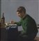 South River, New Jersey (Stati Uniti), 1950 Uomo che mangia Olio su tela, 26 x 24,5 cm Firma in basso a destra: Janson
