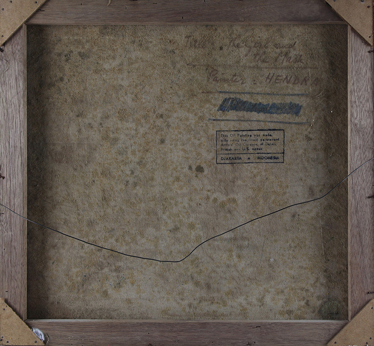 Bandung, Indonesia 1918 - Bali, 1983 Donna e maschera Olio su tela, 50 x 53 cm Firma e data in alto a sinistra: Hendra 1967