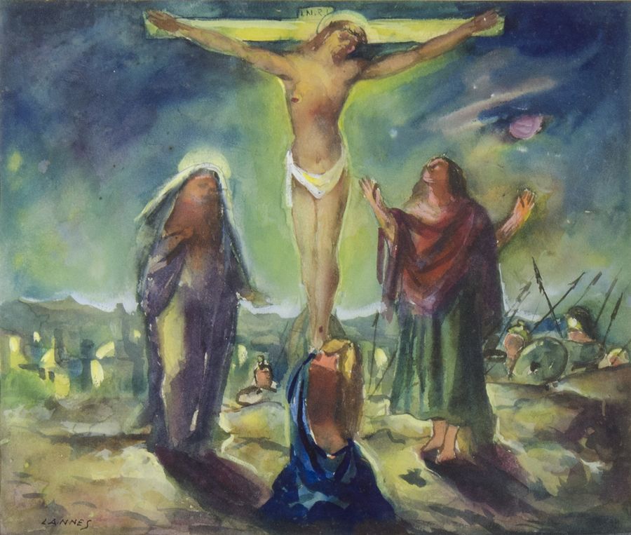 Mario Lannes Trieste 1900-1983 "Crocifissione" cm. 28x35 - acquerello su carta Firmato b. a s.