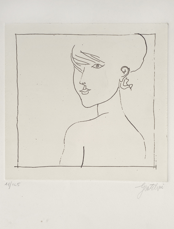Franco Gentilini (Faenza, 1909 - Roma, 1981) Volto Litografia., mm. 505x345 (foglio); mm. 200x205 (lastra). Es. 11/125 Firma e tiratura in basso a destra. € 200/400