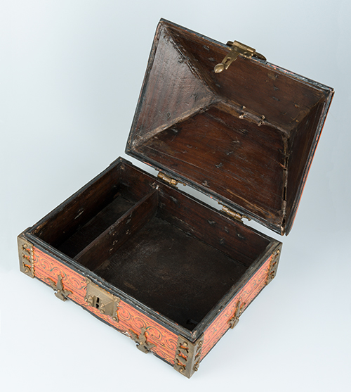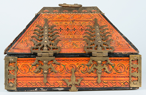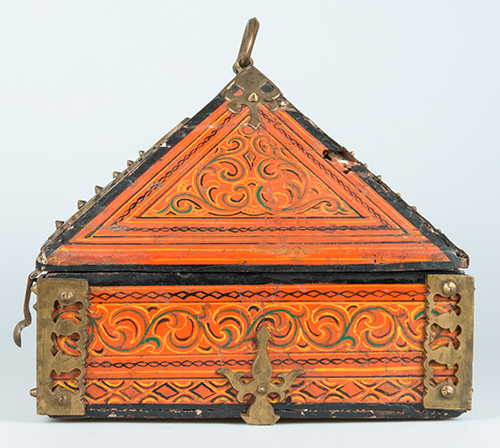 Tibet (?) Piccolo scrigno, XVIII-XIX secolo Legno dipinto e metallo 22,2x31,9x25 cm