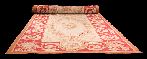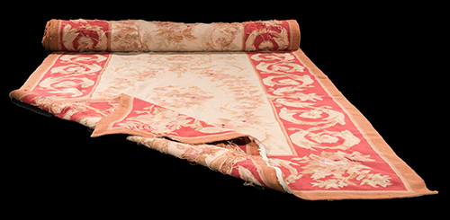 Produzione europea Passatoia tipo Aubusson, XX secolo Lana 1280x138 cm Probabilmente prodotto negli anni Sessanta, il lotto trae il suo interesse principale dal fatto di aver arredato il salone dei ricevimenti della famiglia Rizzoli, portando la testimonianza di grandi incontri come i personaggi più in vista del cinema e della poltica italiani, da Paolo Villaggio a Silvio Berlusconi. Il tappeto compare in immagine parzialmente srotolato.