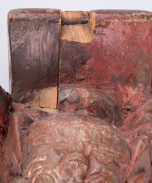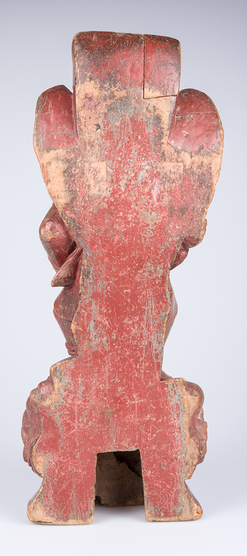 Giava o Bali Hanuman alato - Garuda,fine del XIX - inizi del XX secolo Legno laccato di rosso, ferro 41,8x16,3x11,3 cm Ringraziamo il Prof. Sergio Romagnoli, che, esaminato l'oggetto dal vero, lo identifica con Garuda e ne colloca la produzione a Giava nel XX secolo. Su base fotografica, la dr.ssa Laura Giuliano, funzionario del Museo Nazionale d'Arte Orientale di Roma, ha identificato il soggetto come Hanuman alato e ipotizzato la produzione a Bali tra la fine del XIX - inizi del XX secolo.