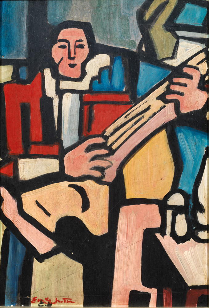 Emilio Notte DONNA CON LA CHITARRA olio su compensato, cm 41,5x28 firmato Provenienza: Collezione privata, Roma Esposizioni: XIX Biennale di Venezia, 1934, ivi cit. p. 159