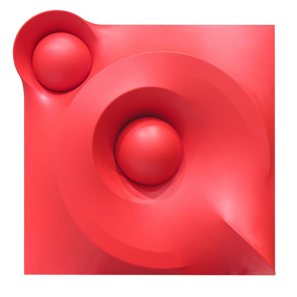 Hector Rigel SUPERFICIE ROSSA NUMERO 56 vernice acrovinilica su tela estroflessa, cm 62x62 entro teca in plexiglass sul retro: firmato e datato eseguito nel 2016 L'opera è accompagnata da autentica dell’artista su fotografia