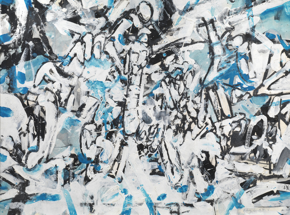 Valerio Adami N. 3 acrilico su carta applicata su tavola, cm 32x42 firmato e datato eseguito nel 1960