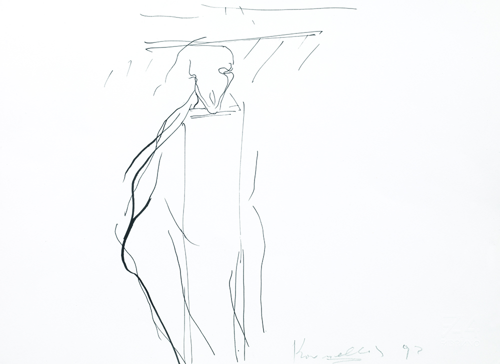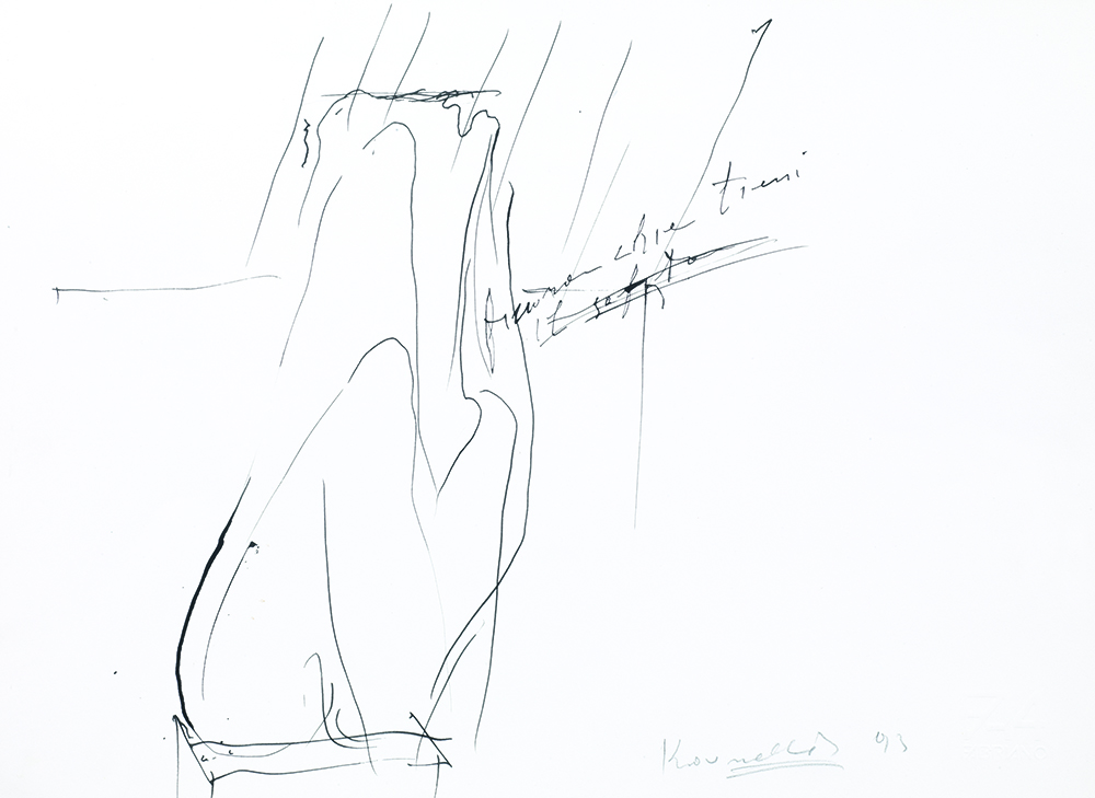 Jannis Kounellis SENZA TITOLO a) china e matita su carta, cm 21x30 firmato e datato eseguito nel 1993 Bibliografia: Marco Gherardi, Tempo di migrare, Milano 1993, p. 121 b) china e matita su carta, cm 21x30 firmato e datato eseguito nel 1993 c) china e matita su carta, cm 21x30 firmato e datato eseguito nel 1993 Bibliografia Marco Gherardi, Tempo di migrare, Milano 1993, p. 8 Le opere sono accompagnate da autentica dell’artista su fotografia (3) Le opere fanno parte del nucleo di chine che Jannis Kounellis ha realizzato per il poema-diario Tempo di migrare che Mario Gherardi aveva realizzato nel 1993, ispirato proprio dall’amicizia che lo lega a Jannis Kounellis. Due delle chine che oggi presentiamo sono pubblicate nel relativo volume.