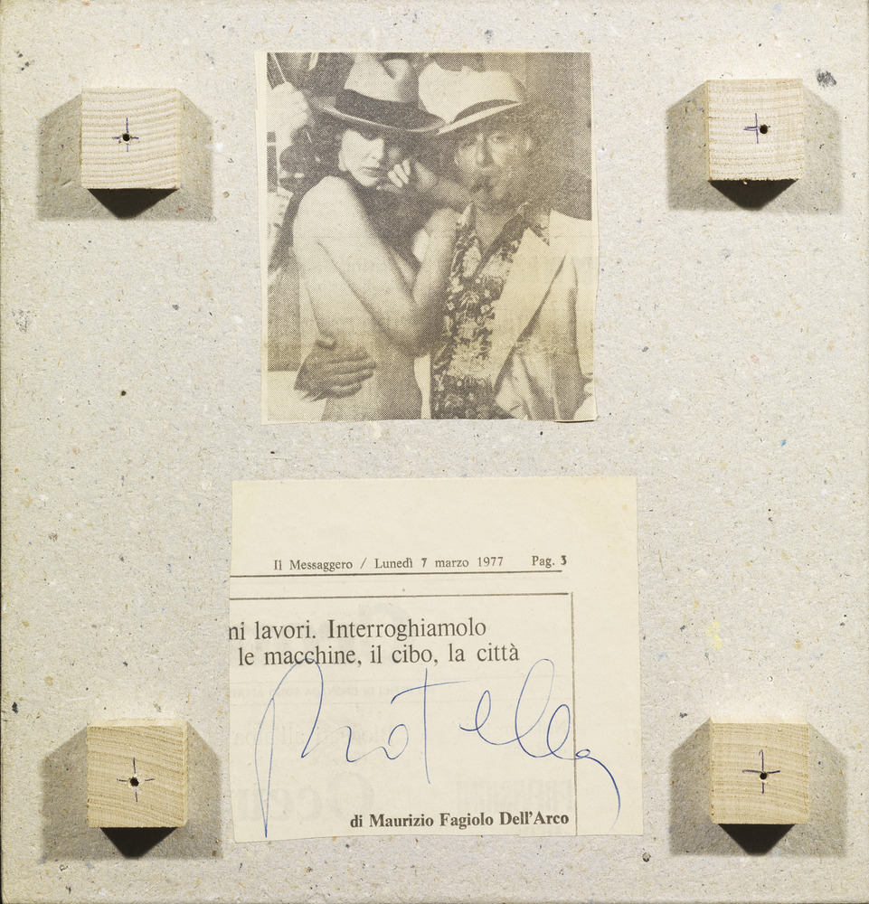 Mimmo Rotella COMPOSIZIONE de´collage applicato su cartone, cm 24x23 sul retro: firmato Provenienza: Galleria Plura, Milano Collezione privata