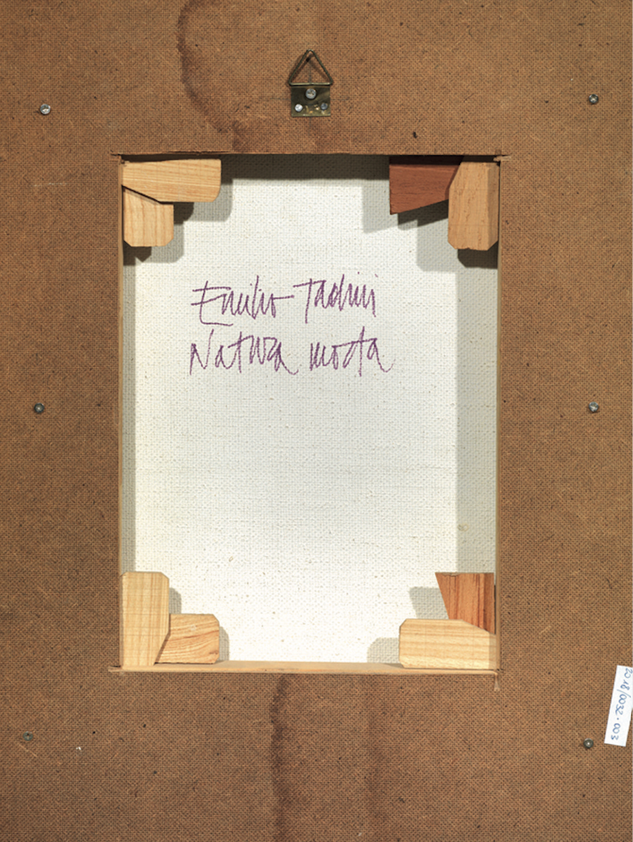 Emilio Tadini NATURA MORTA acrilico su tela, cm 40x33 sul retro: firmato e...