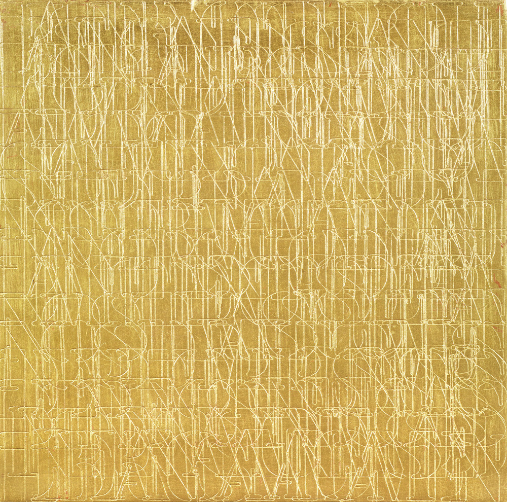 Guido Peruz GENESI incisione e doratura su tavola, cm 28,5x28,5 sul retro: iscitto, firmato e datato eseguito nel 1998