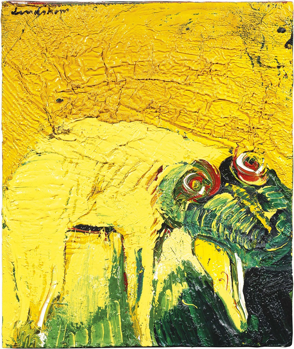 Bengt Lindström Stoccolma 1925 - 2008 Le chien crocodile, 1965 ca. Olio su tela, cm. 65x54 Firma in alto a sinistra: Lindström. Certificato su foto Comité Bengt Lindström, 28 ottobre 2011, con n. 11399.