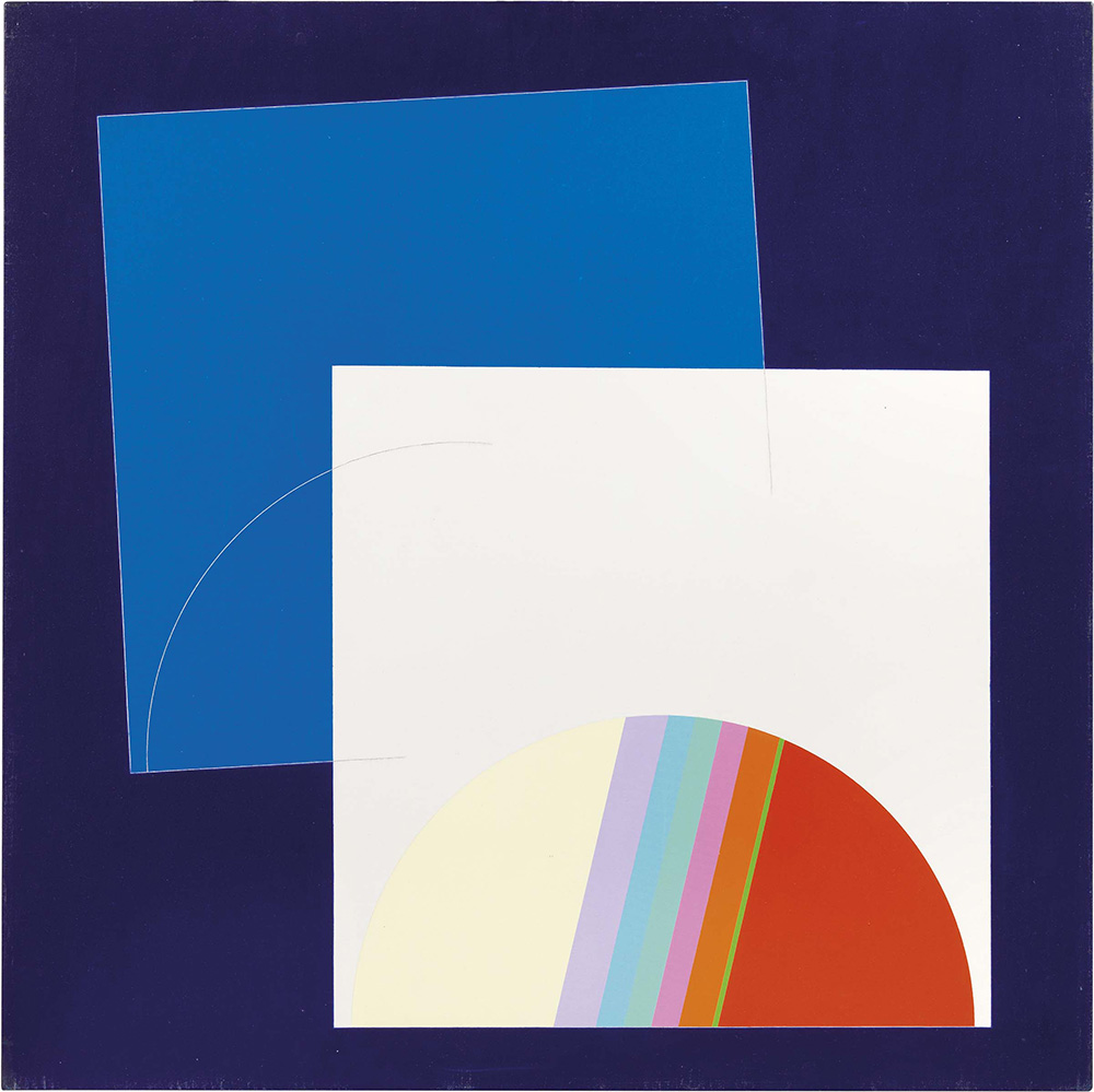 Eugenio Carmi Genova 1920 - Lugano 2016 Ossimoro vagante, 1997 Acrilico su tela tesa su tavola, cm. 100x100 Firma, titolo e data al verso sulla tavola: Eugenio Carmi - "Ossimoro vagante" - 1997 / Carmi / 1997. Certificato su foto Comitato Archivio Eugenio Carmi, Milano, 25 ottobre 2017, con n. 1997-58.