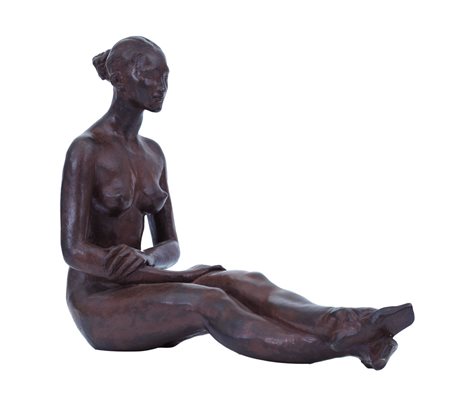 FRANCESCO MESSINA Linguaglossa (Me) 15/12/1900 - Milano 13/09/1995 - Danzatrice seduta, scultura in bronzo a patina marrone cm. 29,6x40,5x14,5; esemplare 23/75, firma e tiratura nella parte inferiore, dichiarazione d'autenticità della fondazione Francesco Messina con timbro e firma su foto rilasciata in sostituzione del documento originale andato smarrito.
