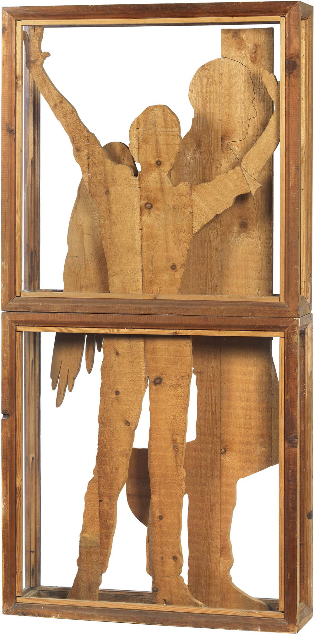 Mario Ceroli Castelfrentano (Ch) 1938 Senza titolo Scultura in legno in teca di legno e vetro, cm. 200x100x24,5 (teca)
