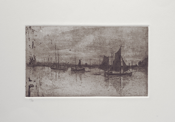 Vittore Grubicy de Dragon (Milano, 1851 - 1920) Porto alla sera Acquaforte, mm. 340x498 (foglio); mm. 112x195 (lastra); es. 37/50 Firma in lastra in basso asinistra. € 200/300