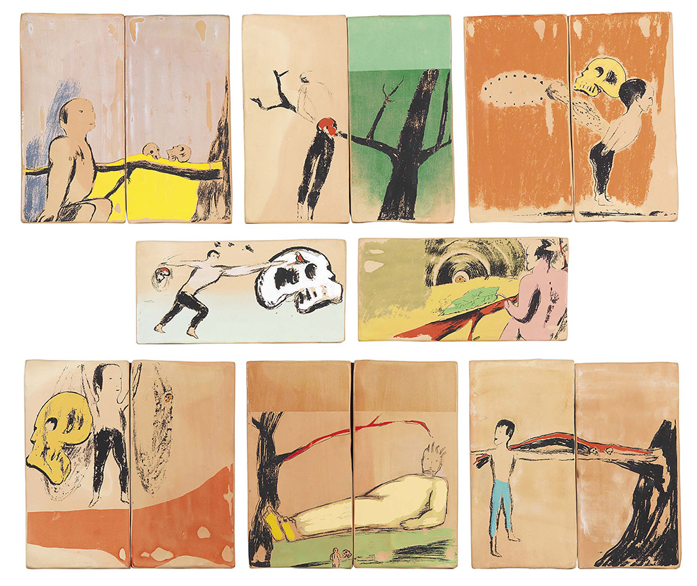 Enzo Cucchi Morro d'Alba (An) 1949 Eroé, 2003 Stampa a colori su mattone, 14 elementi, multiplo, es. 19/30, cm. 14,3x29 (ogni elemento) Alcuni con tiratura e firma al verso: 19/30 E. Cucchi. Foto autenticata dall'artista. Edizione di 30 esemplari più 4 dedicati dall'artista ad personam. Editore Poggiali e Forconi Arte Contemporanea, Firenze. Bibliografia: Enzo Cucchi, Eroé, Poggiali e Forconi, Firenze, 2003, .