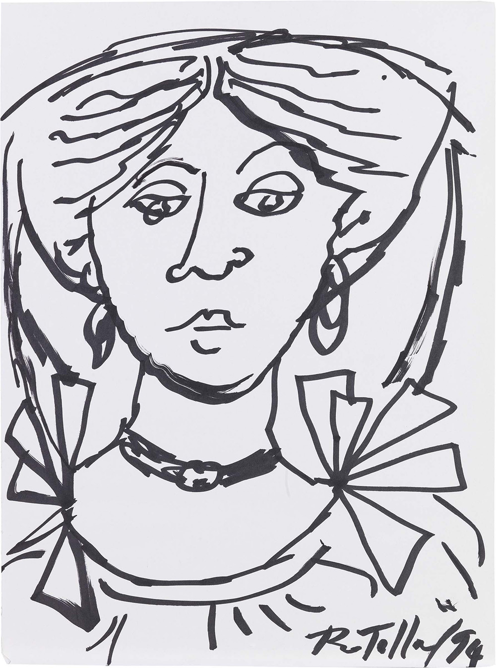 Mimmo Rotella Catanzaro 1918 - Milano 2006 Figura, 1994 Pennarello su carta, cm. 50x37,5 Firma e data in basso a destra: Rotella/94. Storia: Eredi Rotella; Collezione privata