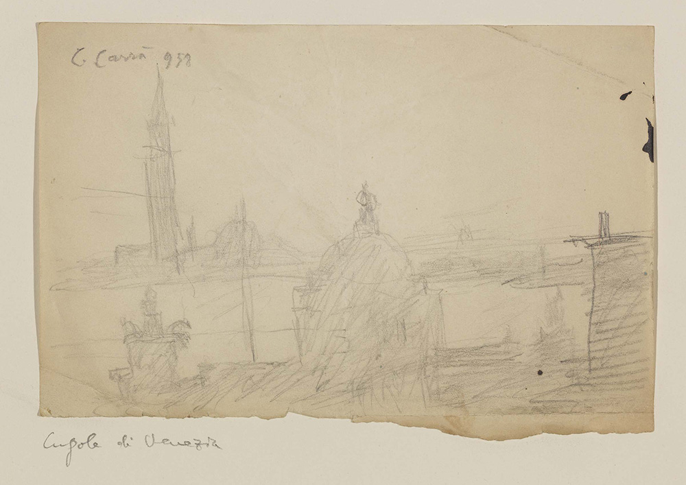 Carlo Carrà Quargnento (Al) 1881 - Milano 1966 Cupole a Venezia, 1958 Matita su carta, cm. 14,6x21,6 Firma e data in alto a sinistra: C. Carrà 958; titolo su un cartone di supporto: Cupole di Venezia. Al verso della cornice: etichetta La Casa dell'Arte, Sasso Marconi, con dati dell'opera e indicazione Esposto alla mostra Centenario nascita C. Carrà feb. aprile 1981, con n. 3095. Bibliografia: Franco Russoli, Massimo Carrà, Carrà disegni, Grafis edizioni d'arte, Bologna, 1977, pp. 466, 467, 515, n. 844.