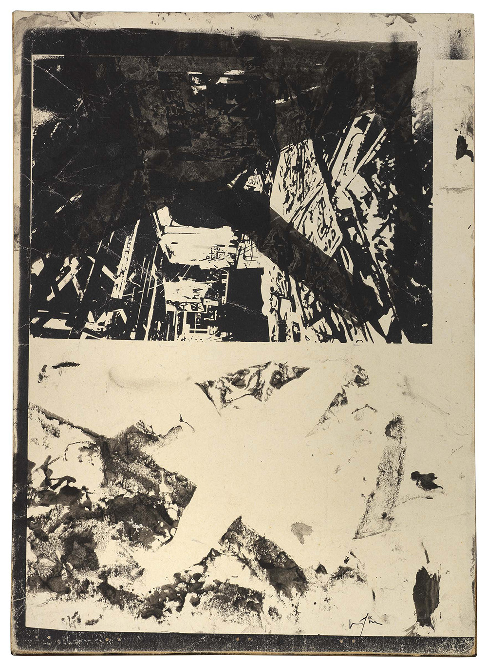 Emilio Vedova Venezia 1919 - 2006 Senza titolo Tecnica mista su base litografica applicata su tela, cm. 29,4x21 Firma in basso a destra: Vedova.