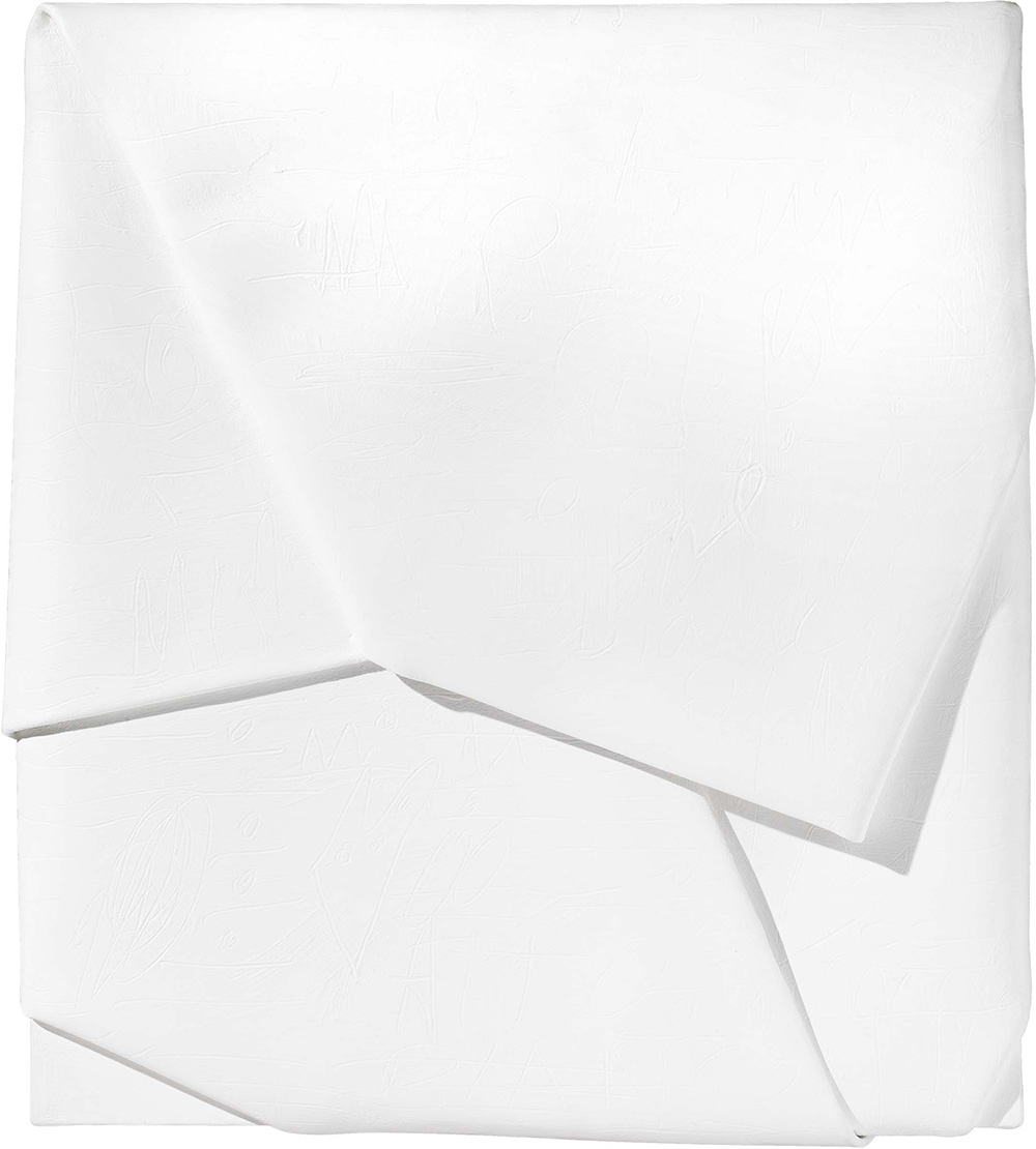 Cesare Berlingeri Cittanova (Rc) 1948 Sul bianco piegato, 2006 Tecnica mista su tela piegata, cm. 73x63 Firma, data, titolo e dedica al verso sulla tela: Berlingeri / 2006 / "Sul bianco piegato" / a Paolo un / Bianco di purezza Cesare Berlingeri. Certificato su foto Archivio delle Opere di Berlingeri Cesare, Galleria d'Arte Vecchiato, Padova, con n. I 1306-1359.
