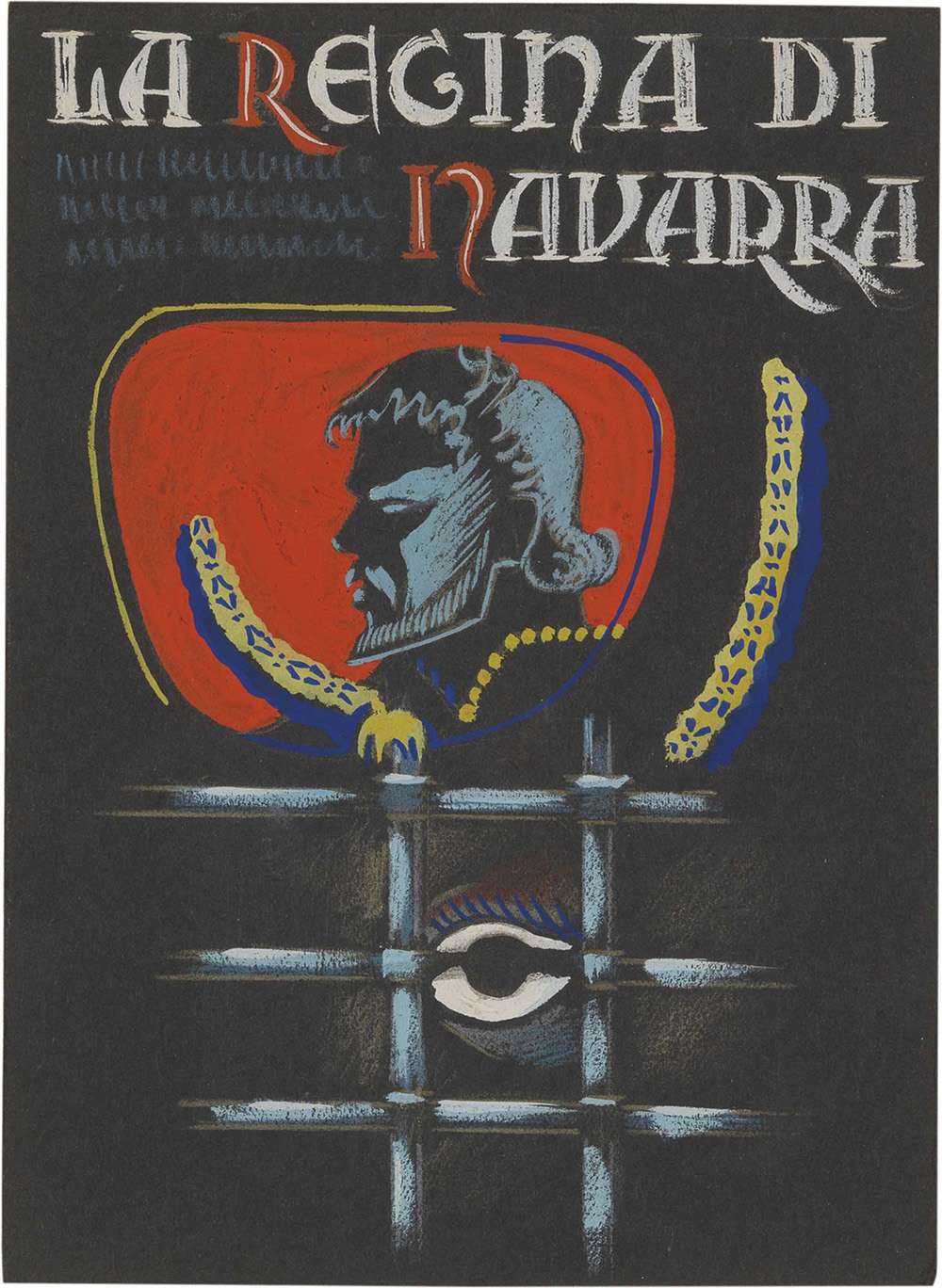 Enrico Prampolini Modena 1894 - Roma 1956 Tre disegni A) La Regina di Navarra, 1941, tempera su carta, cm. 16x11,5. Al verso su un cartone di supporto: timbro e etichetta con n. 9019 Galleria Arte Centro, Milano, con dati dell'opera e indicazione Pubbl. cat. Galleria Civica / Modena dic '91 - PM3. Esposizioni: Enrico Prampolini. Taccuini inediti 1942-1956, Modena, Galleria Civica, Palazzina dei Giardini, 24 novembre 1991 - 19 gennaio 1992, cat. p. 204, n. PM3; B) Bozzetto di scena: I capricci di Callot, 1942, matite colorate su cartoncino, cm. 11x13,5. Al verso della cornice: timbro e etichetta con n. 6960 Galleria Arte Centro, Milano, con dati dell'opera e indicazione Pubbl. Cat. Istituto Italo Latino Americano / Roma 1974 - 47.4; C) Bozzetto di scena: I capricci di Callot, 1942, matite colorate su cartoncino, cm. 11x13,5. Al verso della cornice: timbro e etichetta con n. 7959 Galleria Arte Centro, Milano, con dati dell'opera e indicazione Pubbl. Cat. Istituto Italo Latino Americano / Roma 1974 - 47.5.