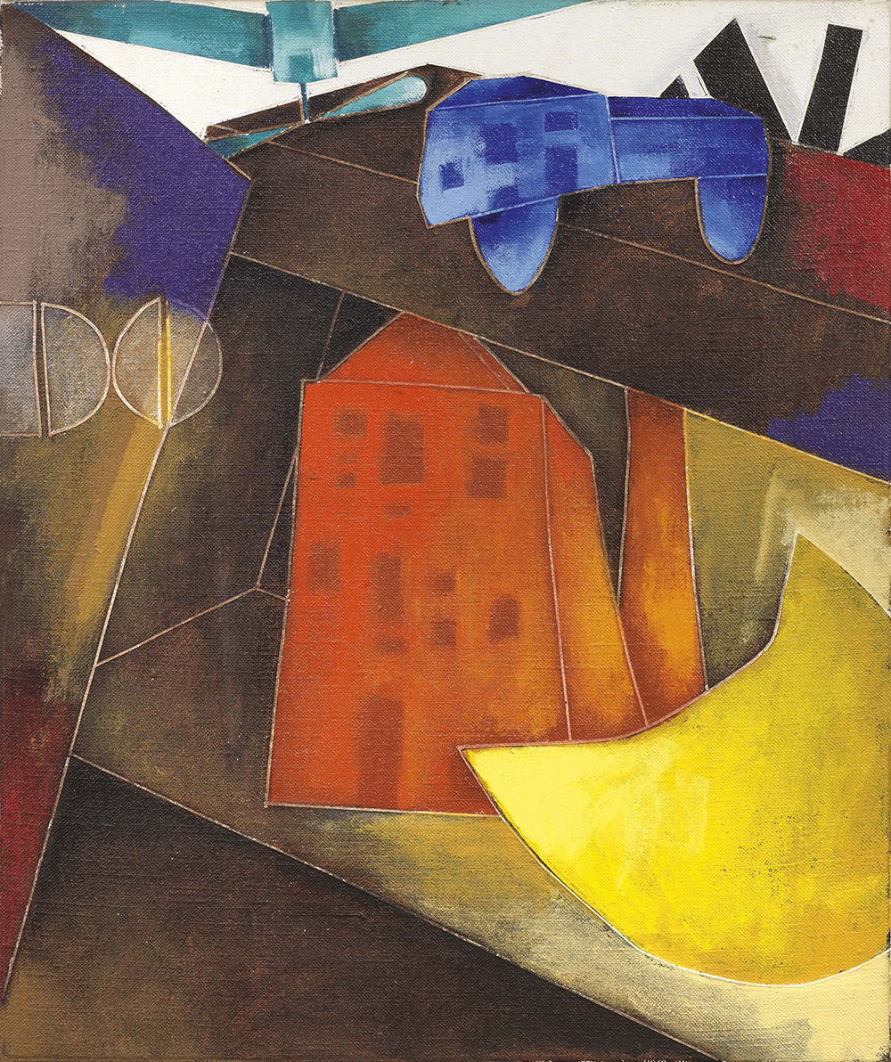 Emilio Tadini Milano 1927 - 2002 L'Armadio magico di Aldo Olio su tela, cm. 61x50 Firma e titolo al verso sulla tela: Tadini / L'armadio magico / di Aldo.