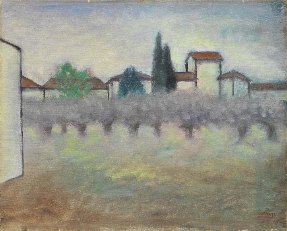 Ottone Rosai Firenze 1895 - Ivrea (To) 1957 Paesaggio toscano, 1941 Olio su tela, cm. 40x50 Firma e data in basso a destra: O. Rosai / [XIX 41]. Al verso sul telaio: etichetta e timbro Galleria Iolas - Galatea, Roma: timbro La Vetrina di Chiurazzi, Roma: etichetta e timbro Galleria d'Arte "La Chiocciola", Padova: etichetta Centenario della nascita 1895-1995 / Ottone Rosai / Antologica - 200 opere dal 1913 al 1957 / Farsettiarte / Prato - 23 settembre/22 ottobre 1995 / Cat. n. 140. Certificato su foto di Luigi Cavallo, Milano, 10 maggio 1995. Esposizioni Ottone Rosai, 200 opere dal 1913 al 1957, a cura di Luigi Cavallo, Prato, Farsettiarte, 23 settembre - 22 ottobre 1995, poi Milano, Palazzo Reale, 26 ottobre 1995 - 6 gennaio 1996, cat. pp. 204, 320, n. 140, illustrato a colori.