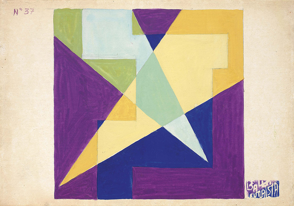 Giacomo Balla Torino 1871 - Roma 1958 Motivo prismatico, 1925-29 Tempera grassa su carta applicata su tela, cm. 24,5x34,5 Timbro in basso a destra: Balla / Futurista; in alto a sinistra: N. 37. Storia Casa Balla, Roma; Collezione privata, Milano; Collezione privata Esposizioni Giacomo Balla. La nuova maniera 1920-1929, a cura di Elena Gigli, Farsettiarte, Cortina d'Ampezzo, 27 dicembre 2014 - 10 gennaio 2015, poi Milano, 22 gennaio - 28 febbraio 2015, cat. n. 16, illustrata a colori.