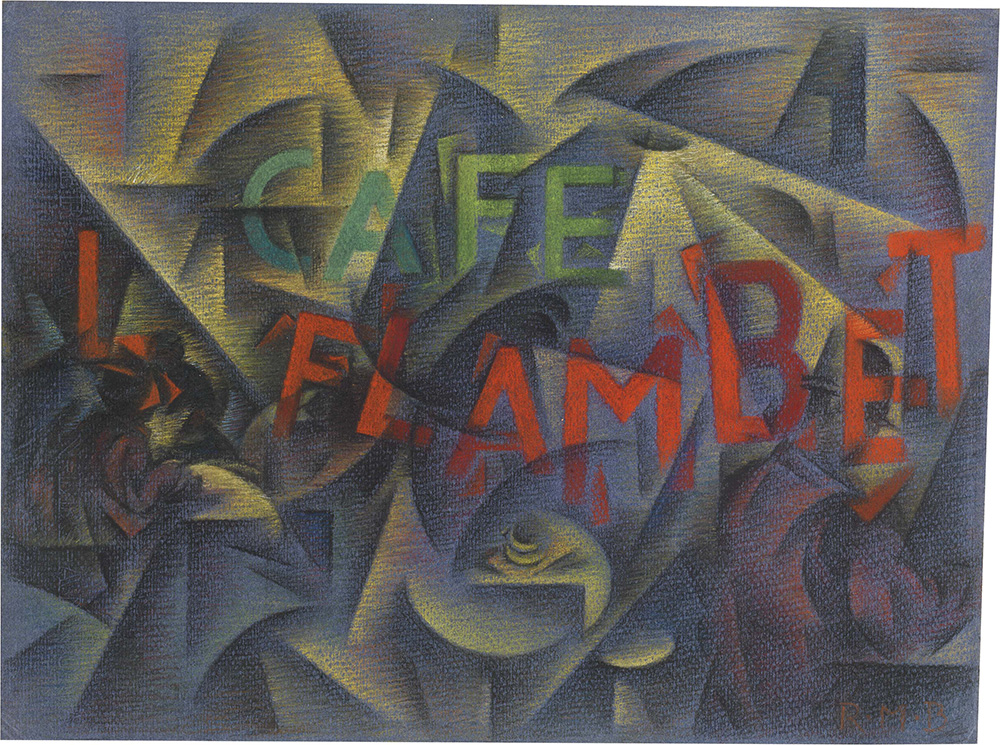 Roberto Marcello Baldessari Innsbruck 1894 - Roma 1965 Cafe Flambet, 1919 Pastelli colorati su cartoncino, cm. 25x33,5 Sigla in basso a destra: R.M.B.; al verso scritta: MR /19 / n°5. Opera registrata presso l'Archivio unico per il catalogo delle opere futuriste di Roberto Marcello Baldessari, Rovereto, al n. B19 - 29. Esposizioni Baldessari, Opere 1915 - 1934, a cura di Maurizio Scudiero, Cortina d'Ampezzo, Galleria d'Arte Frediano Farsetti, 27 dicembre 2008 - 7 gennaio 2009, poi Milano, Farsettiarte, 15 gennaio - 14 febbraio 2009, cat. n. 30, illustrato a colori.