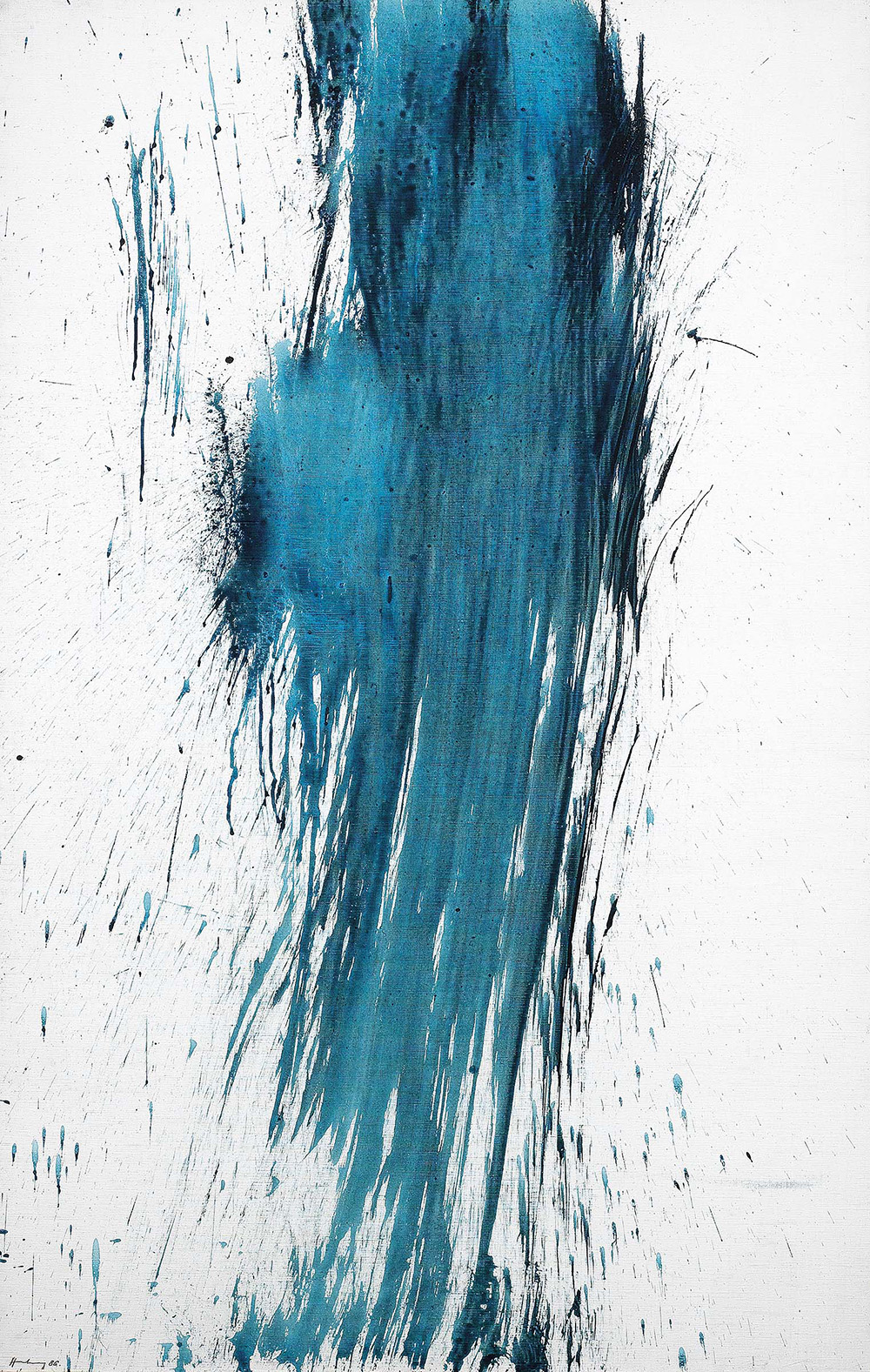 Hans Hartung Lipsia 1904 - Antibes 1989 T 1986-H15, 1986 Acrilico su tela, cm. 130x81 Firma e data in basso a sinistra e al verso sulla tela: Hartung 86; titolo sul rivolto della tela: T 1986-H15; firma e titolo sul telaio: Hartung T 1986-H15: etichetta Comune di Ferrara - Palazzo dei Diamanti / Direzione Gallerie Civiche d'Arte Moderna / Mostra Antibes; sulla cornice e sul risvolto della tela: due timbri Galerie Daniel Gervis, Paris. Certificato su foto Fondation Hans Hartung et Anna-Eva Bergman, Antibes, 11 aprile 2006, con n. Ct 234-0.