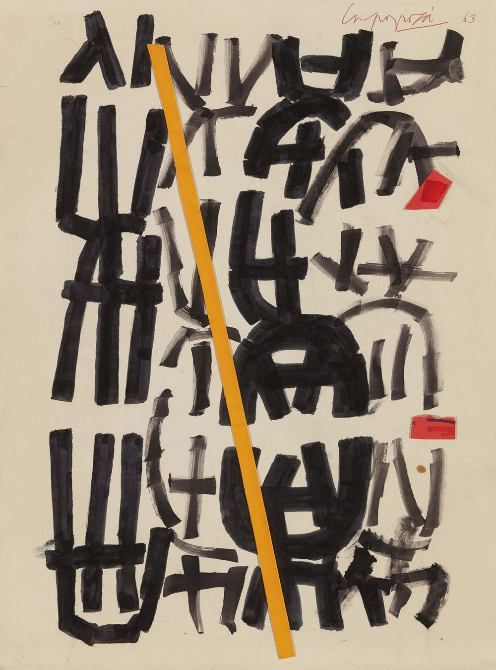 Giuseppe Capogrossi Roma 1900 - 1972 Senza titolo, 1963 Penna-feltro e collage su carta, cm. 28x21 Firma e data in alto a destra: Capogrossi 63. Certificato su foto di Guglielmo Capogrossi, Fondazione Capogrossi, Roma, 5 ottobre 2011, con n. AC/278/TM.