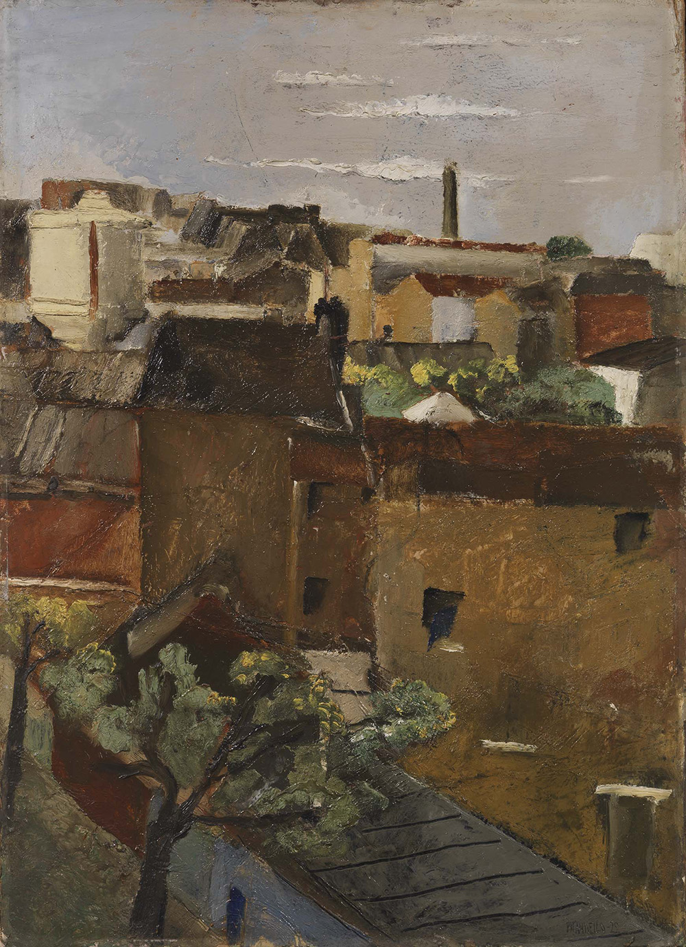 Fausto Pirandello Roma 1899 - 1975 Tetti di Parigi, 1929 Olio su cartone, cm. 70,5x51,5 Firma e data in basso a destra: Pirandello 29; firma, titolo e data al verso: Pirandello / Tetti di Parigi / 1929: due etichette Comune di Ferrara - Palazzo dei Diamanti / Direzione Gallerie Civiche d'Arte Moderna. Storia Collezione privata, Roma; Collezione privata Esposizioni Fausto Pirandello, Ferrara, Galleria Civica d'Arte Moderna, Palazzo dei Diamanti, 3 luglio - 10 ottobre 1982, cat. n. 13; Fausto Pirandello, Palermo, Civica Galleria d'Arte Moderna Empedocle Restivo, 22 dicembre 1982 - 22 gennaio 1983, cat. n. 13; Fausto Pirandello, Macerata, Palazzo Ricci, 2 giugno - 16 settembre 1990, cat. n. 8. Bibliografia Guido Giuffrè, Fausto Pirandello, con un'appendice di scritti inediti, Edizioni della Cometa, Roma, 1984, p. 38, tav. 17; Claudia Gian Ferrari, Fausto Pirandello, Leonardo - De Luca Editori, Roma, 1991, pp. 102, 103, n. 27; Claudia Gian Ferrari, Fausto Pirandello. Catalogo Generale, Mondadori Electa, Milano, 2009, p. 989, n. 51 (opera datata 1930).