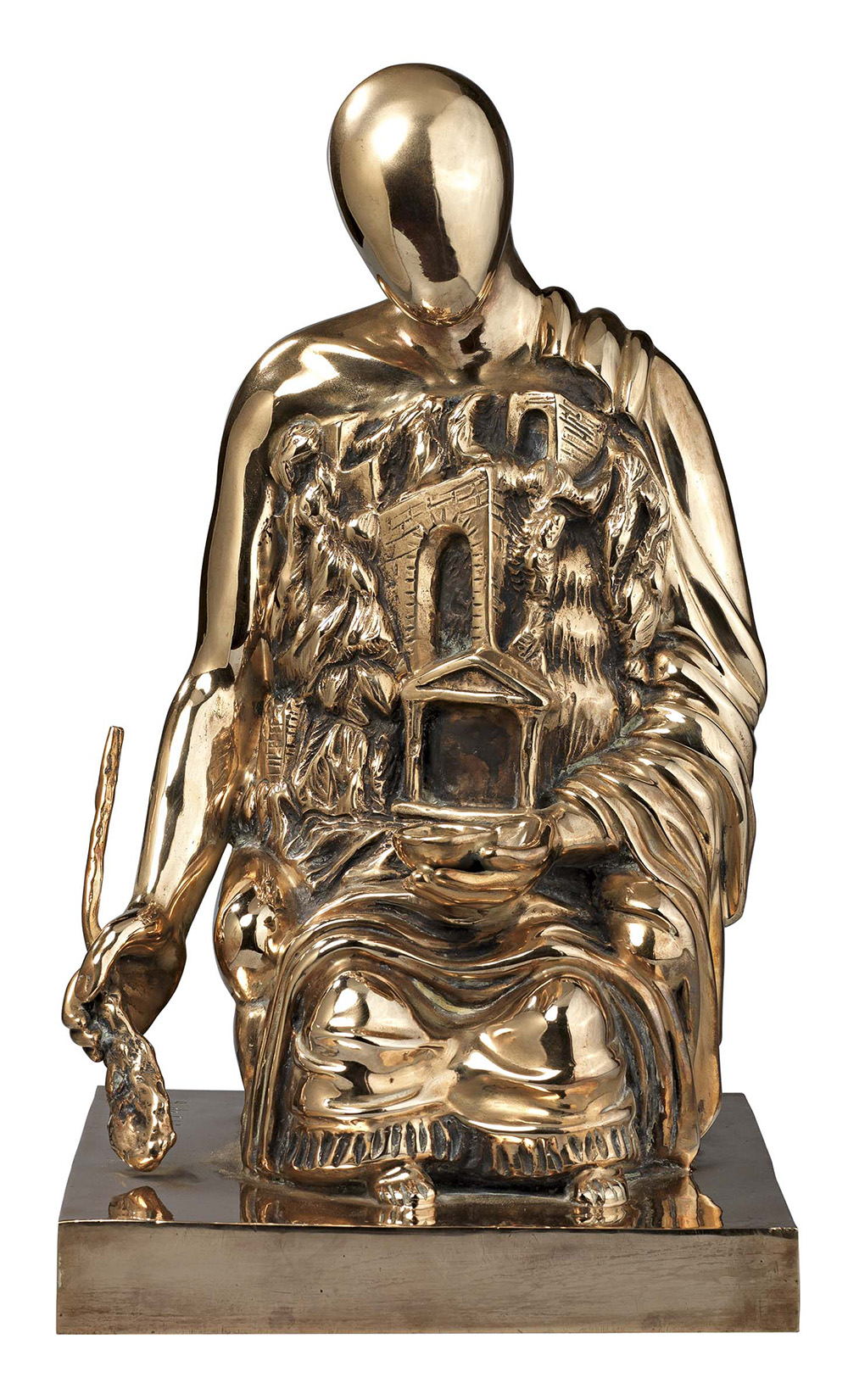Giorgio de Chirico Volos 1888 - Roma 1978 Il pittore, 1968-87 Scultura in bronzo dorato, es. III/VII, cm. 46,6 h. Firma, titolo e tiratura sulla base: G. de Chirico / "Il pittore" / III/VII: punzone Fonderia Bonvicini, Verona: marchio del centenario della nascita del Maestro Giorgio de Chirico. Certificato di Claudio Bruni Sakraischik. Esposizioni La Neometafisica. Giorgio de Chirico & Andy Warhol, Cortina d'Ampezzo, Farsettiarte, 26 dicembre 2011 - 8 gennaio 2012, poi Firenze, Galleria d'Arte Frediano Farsetti, 14 gennaio - 18 febbraio 2012, cat. n. 20, illustrata a colori; Giorgio de Chirico. Myth and Mystery, Londra, Estorick Collection of Modern Italian Art, 15 gennaio - 19 aprile 2014, cat. pp. 32, 33, n. 4, illustrata a colori. Bibliografia Achille Bonito Oliva, Giorgio De Chirico. Pinturas e esculturas, catalogo della mostra Museu Brasileiro da Escultura, San Paolo, 16 marzo - 28 aprile 1998, pp. 28, 60, n. 14 (illustrato altro esemplare). Da un gesso originale del 1968, tiratura in 7 esemplari numerati da I/VII a VII/VII, due prove d'artista segnate EA I/II, EA II/II e una prova fuori commercio non numerata per la Fondazione Giorgio e Isa de Chirico. L'edizione è stata eseguita presso la Fonderia Bonvicini di Verona (1988 e 1991), in occasione del centenario della nascita del Maestro, ed è stata autorizzata dalla signora Isabella de Chirico alla signora Lisa Sotilis, in data 7 marzo 1987.