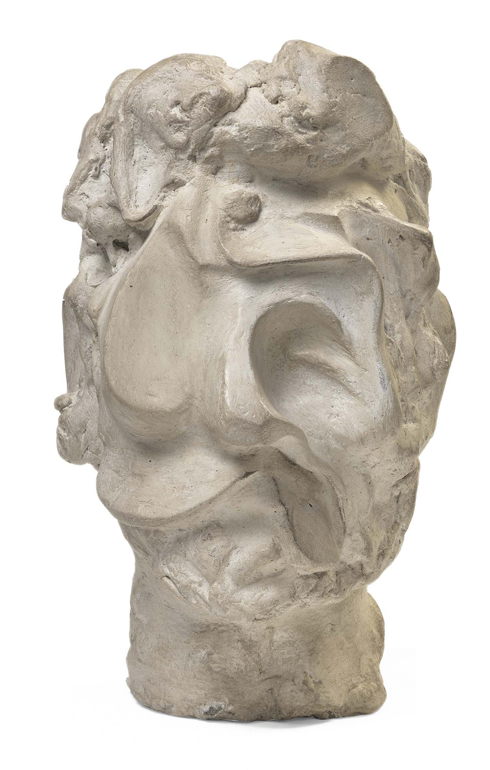 Lorenzo Viani Viareggio (Lu) 1882 - Ostia (Roma) 1936 Testa di uomo, 1919 Scultura in gesso, cm. 40 h. Data a sinistra: 1919. Certificato con foto di Enrico Dei, Viareggio, 19 dicembre 2017.
