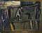 Mario Sironi Sassari 1885 - Milano 1961 Composizione, 1954 ca. Olio su tela, cm. 80,5x100,5 Firma in basso a destra: Sironi. Al verso sul telaio: timbro Galleria del Milione, Milano, con n. 6983: timbro Galleria d'Arte Sacerdoti, Milano. Certificato su foto di Francesco Meloni.