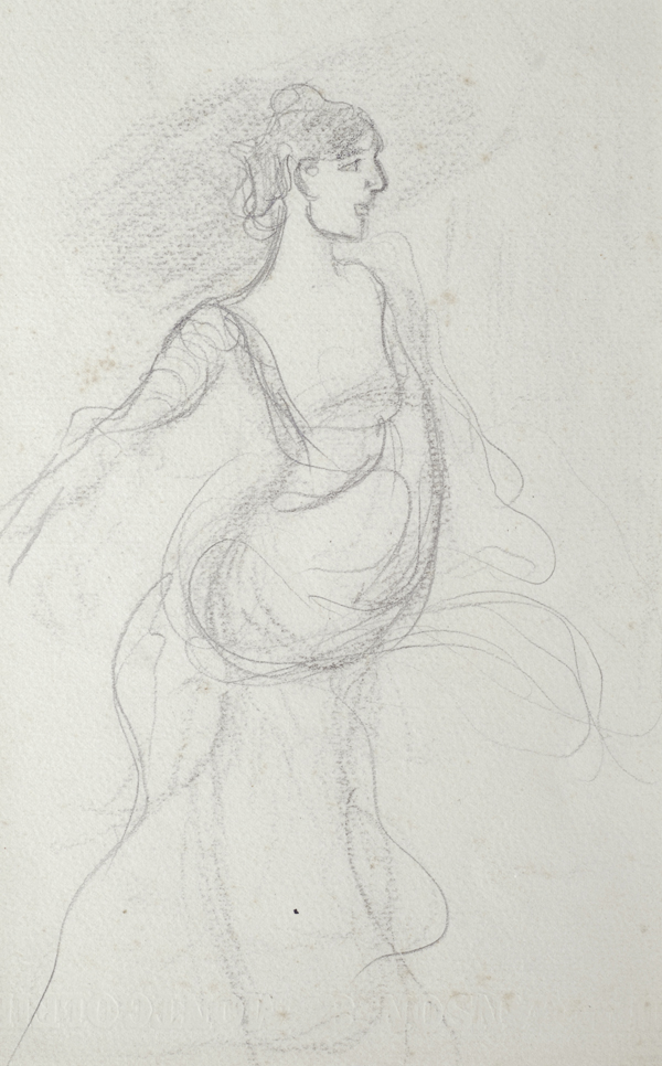 Ulvi Liegi (Livorno, 1858 - 1939) Figura femminile Matita su carta, cm. 24x15 Sul verso: abbozzi di figure. € 180/250