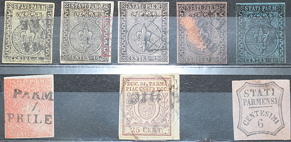 Lot 52 | Parma 1852/59-lotto di num.8 francobolli num. 1,2,3,4,5,7,10, giornali 1A...
