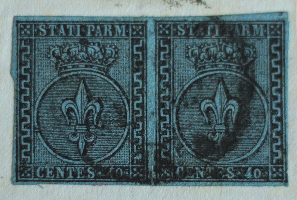 Parma 1852- num. 5 in coppia su frammento Prezzo di catalogo : 3.250 €