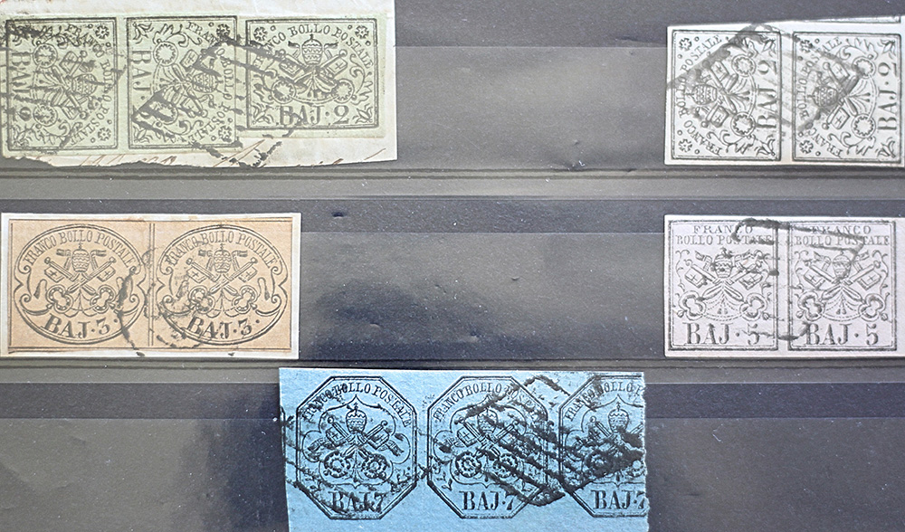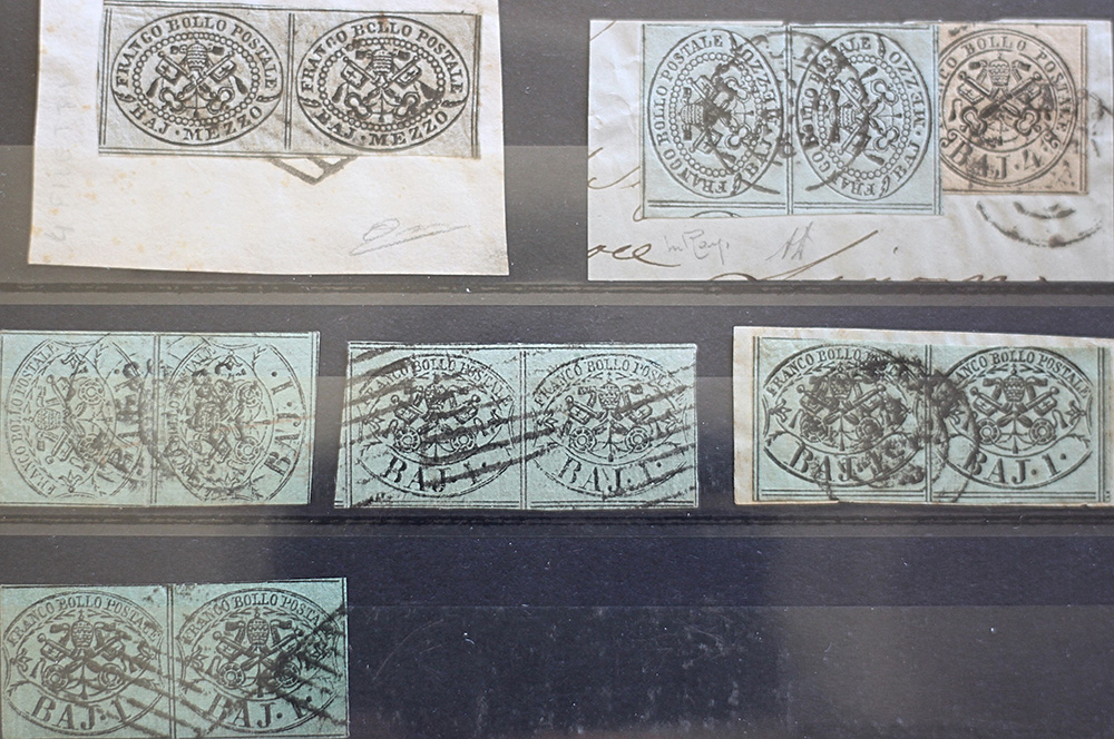 Stato Pontificio 1852- lotto di num. 11 coppie su frammento e sfuse, num. 1,1,2,2,2,2A,3,3A,4,6,8 Prezzo di catalogo : 2.000 € +