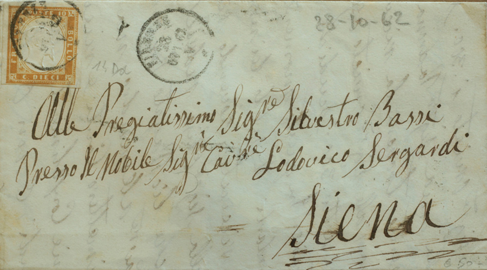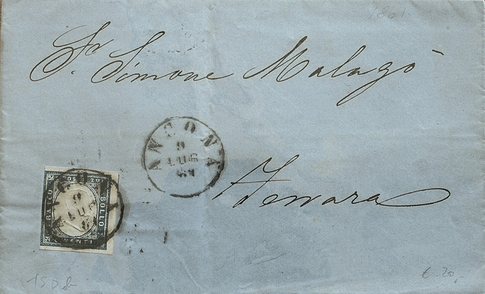 Sardegna 1855/63-num.14+15 su due buste Prezzo di catalogo : 220 €