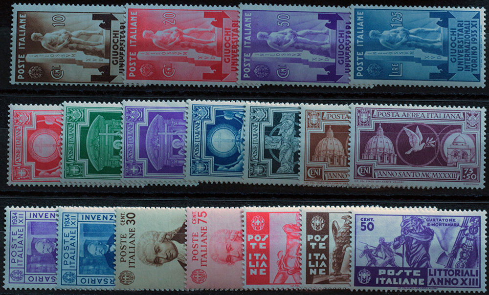 1933/36 num.341-356, 362-365, 377-379, 394-397, + aerea 54-55, + aerea 60-68 Prezzo di catalogo : 310 €