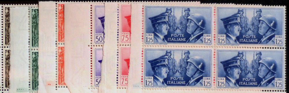 1941 num.452-457 in quartine d'angolo senza linguella Prezzo di catalogo : 450 €