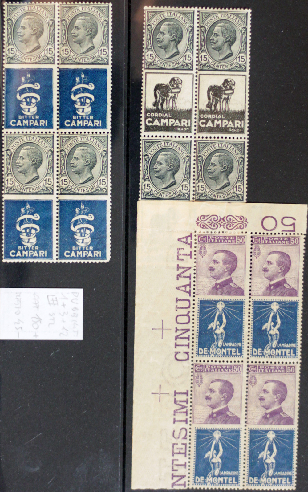 1924/25 pubblicitari num.1,3,12 in quartine senza linguella Prezzo di catalogo : 150 € +