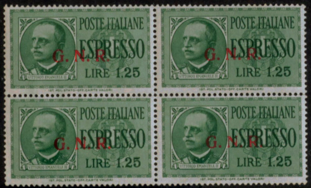 1943/44 espresso num.19 tiratura di Verona in quartina senza linguella, firma Biondi Prezzo di catalogo : 200 € +