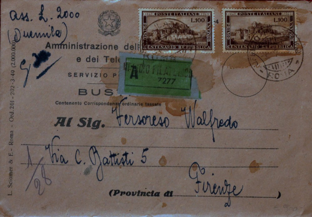 1949 num.600x2 su busta assicurata Prezzo di catalogo : 3.000 €