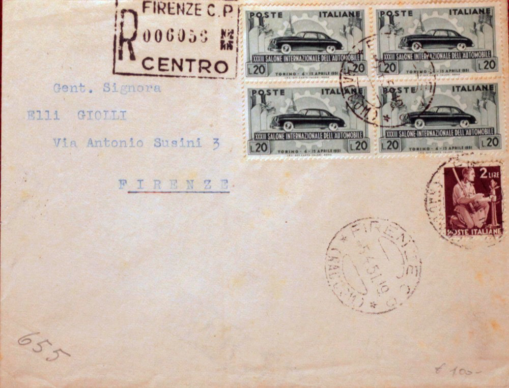 1951 num.655 in quartina, num.552 su busta raccomandata Prezzo di catalogo : /