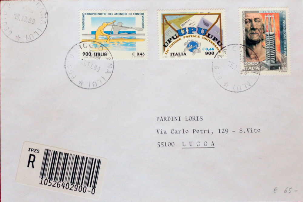 1999 num.2430,2429,2423 su busta raccomandata in data 15.10.1999 Prezzo di catalogo : /