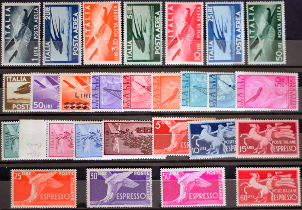 1945/52 posta aerea num.126-145, espressi num.25-31 senza linguella Prezzo di catalogo : 273 €