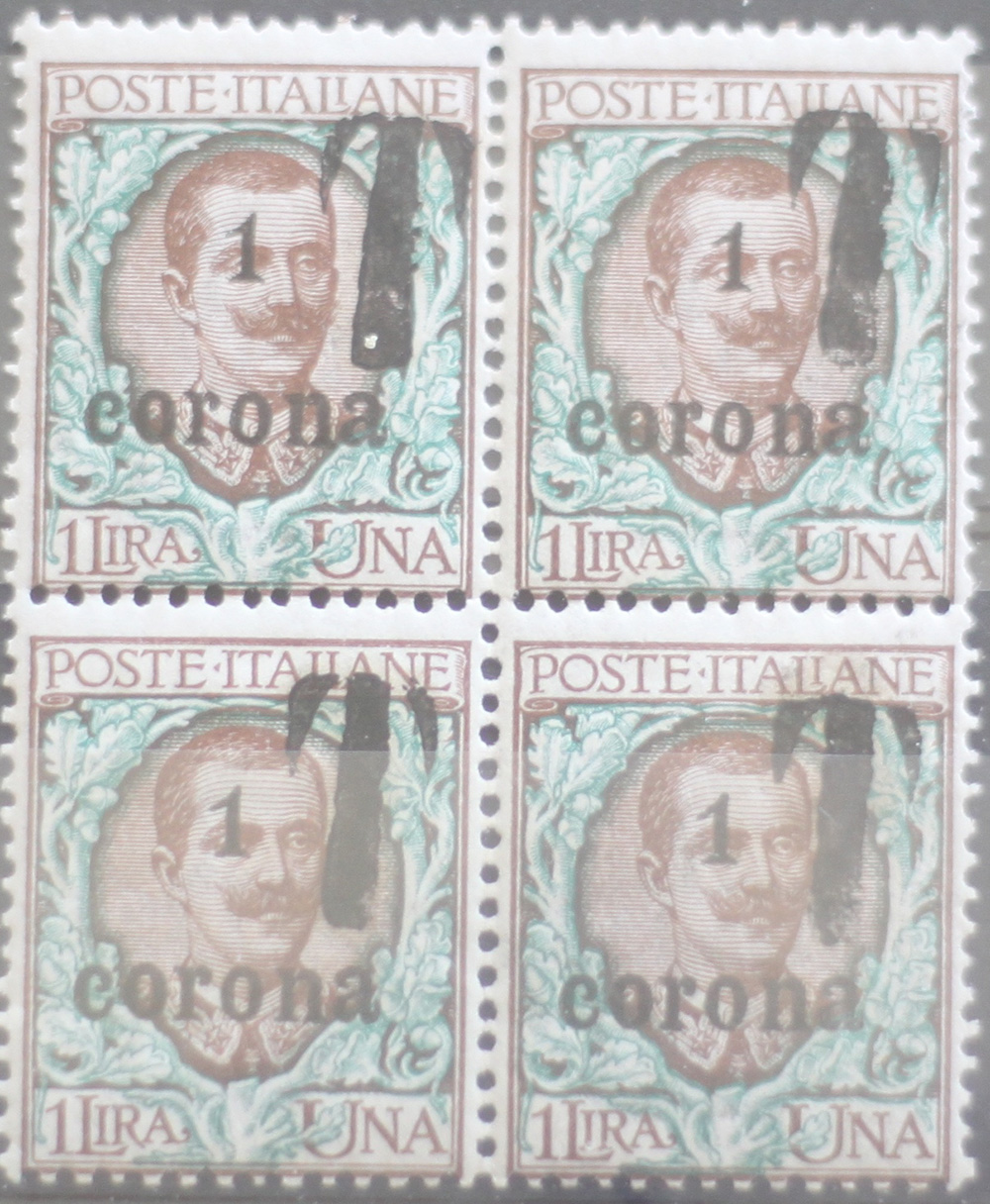 1918/19 Trentino Alto Adige-Bolzano 1 num.BZ1-19A in quartina senza linguella Prezzo di catalogo : 660 € +