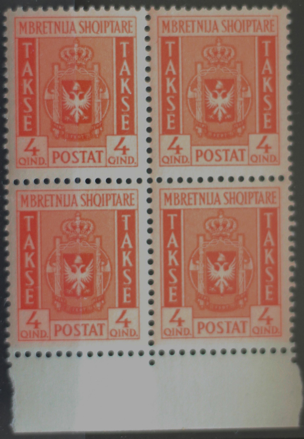 1940 Albania segnatasse num.1 in quartina senza linguella Prezzo di catalogo : 950 € +